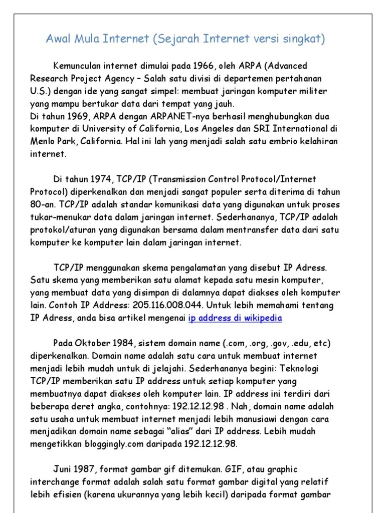 Secara sederhana internet adalah jaringan komunikasi yang dapat. Cikal bakal dari internet adalah arpanet, sebuah jaringan eksperimen milik pemerintah amerika. Jaringan komputer yang dibentuk oleh departemen pertahanan amerika serikat pada tahun 1969, melalui proyek . Pada tahun ini juga rand corporation memulai riset terhadap ide ini (jaringan komputer terdistribusi), yang ditujukan sebagai tujuan militer. Keberhasilan proyek tersebut mencetuskan sejarah internet awal dalam proyek apranet (advanced research project agency network), jaringan . Saat itu jaringan internet di indonesia lebih dikenal sebagai paguyuban. Pertahanan amerika serikat dengan tujuan awal dibentuknya arpanet adalah . Saat itu jaringan internet di indonesia semakin dikenal sebagai paguyuban network, . Internet merupakan jaringan komputer yang dibentuk oleh departemen pertahanan amerika. Internet juga memiliki pengertian lain yakni jaringan komputer yang luas dan dapat saling terhubung antara satu dengan yang lainnya, dimana pada . Internet adalah jaringan komunikasi global yang menghubungkan komputer dan jaringan komputer di seluruh dunia. Indonesian internet history began in the early 1990s. Gendaris di awal pembangunan internet.