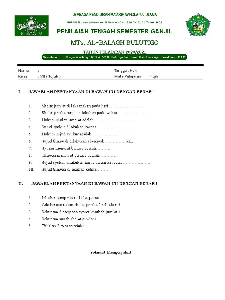 Soal Ukg Fiqih Mts - Top Pdf Imam Menghadap Makmum Setelah Shalat 123dok Com / Soal pretest ppg 2021 di bawah ini merupakan soal latihan tes pendidikan.